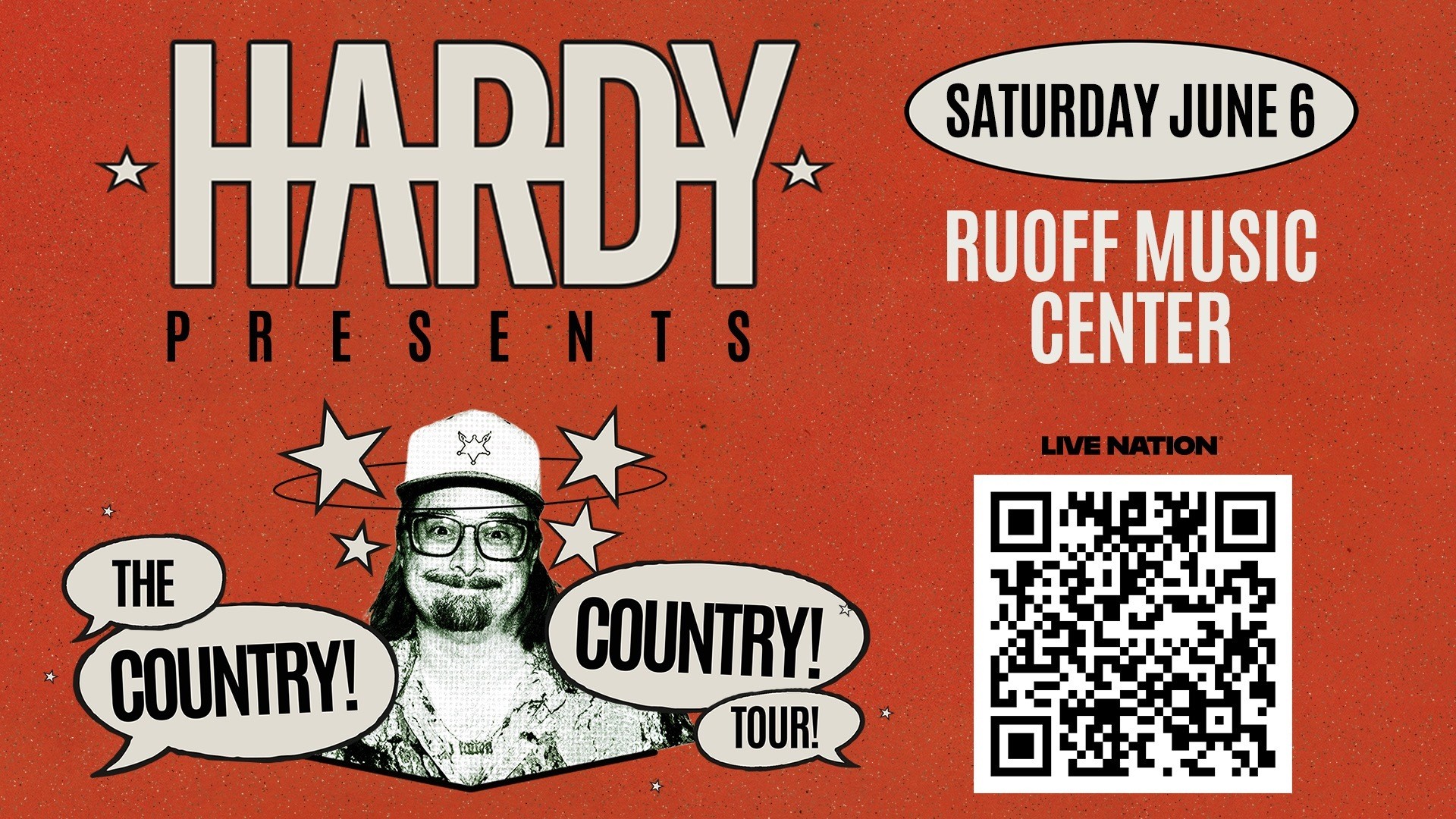 Making the whole damn country, country, “Nashville wildcard” (Rolling Stone) HARDY continues an electric run with the release of his new studio album COUNTRY! COUNTRY!, its deluxe counterpart COUNTRY! COUNTRY! COUNTRY!. His THE COUNTRY! COUNTRY! TOUR! includes special guests Cameron Whitcomb and McCoy Moore.